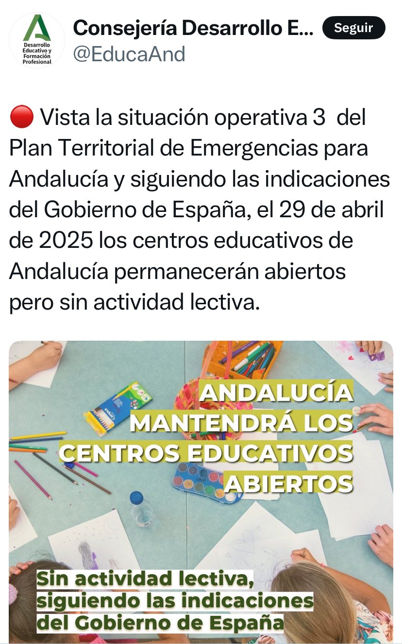 El presidente del Gobierno, Pedro Sánchez, informó anoche en su segunda comparecencia que los colegios e institutos de las Comunidades de Madrid, Andalucía, Castilla-La Mancha, Extremadura, Galicia, La Rioja, la Región de Murcia y la Comunidad Valenciana permanecerán abiertos este martes pero sin actividad lectiva, debido al apagón que afectaba ayer a todo el país.